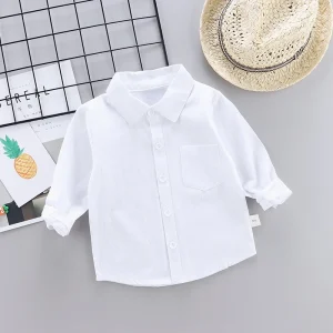 New Children SOLID WHITE Boys/girls Shirts Kids Tops Boys/girls Long Sleeve Baby Wedding Clothing Baby Top Tee Shirts 0-4 Years