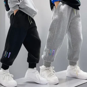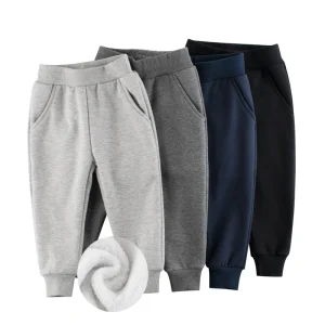 Plus Velvet Sports Pants Boys 2025 Winter New Children Clothing Solid Color Kids Elastic Waist Sweatpant for Boy Trouser 2-9Y