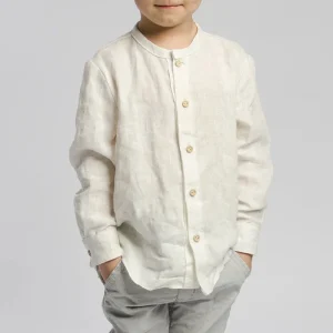 Retro Linen Long Sleeves White Shirt With Wooden Buttons For Boys Spring New Toddler Kids Casual Cotton And Linen Shirts TZ428