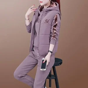 3pcs Women’s Clothing Set Fleece-lined Hooded Sweater &Sleeveless Tank Top & Sports Sweatpants Pants